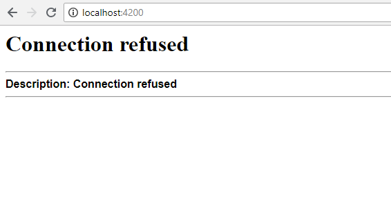 我得到了“连接拒绝”页面,而运行角4应用程序本地。