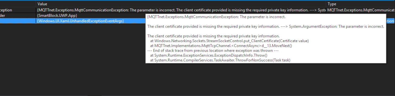 Debug.WriteLine("+++++" + serverCertificate.HasPrivateKey);