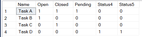 CREATE TABLE #Task ([ID] int, [Name] varchar(max), StatusID int)