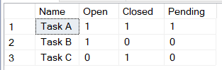 COUNT(StatusID) FOR [Status] IN ([Open],[Closed],[Pending])