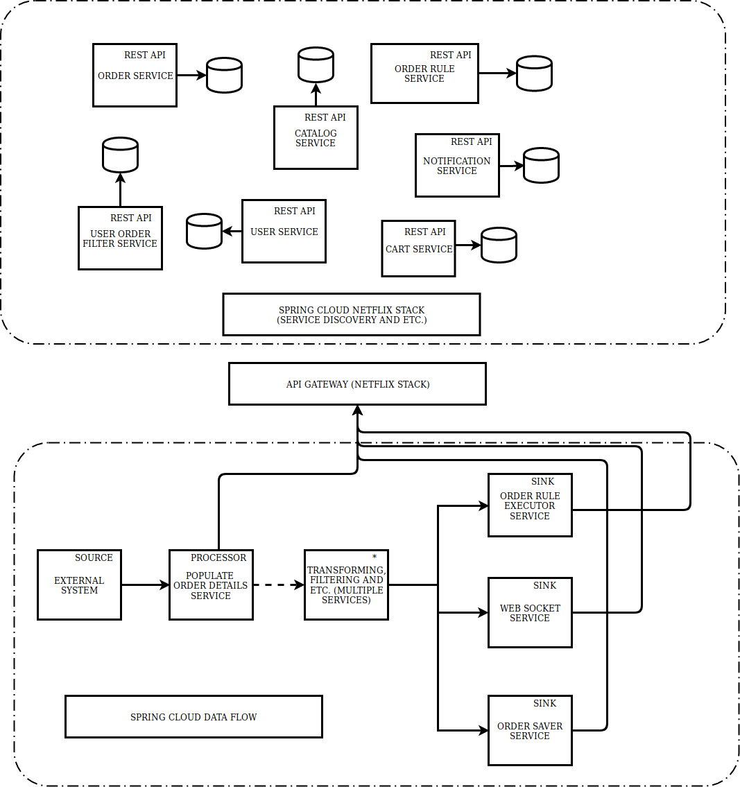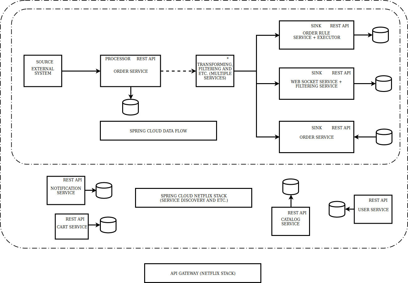由于一些功能在这些服务之间交叉,所以在对Stream框架的理解中,我有一个关于什么是“微服务”的问题。特别是,有单独的服务是否有意义?Stream中的微服务可以有一个REST,与数据库一起工作并同时处理事件吗?这样的图表有意义吗?目前是否有可能构建这样的堆栈?
