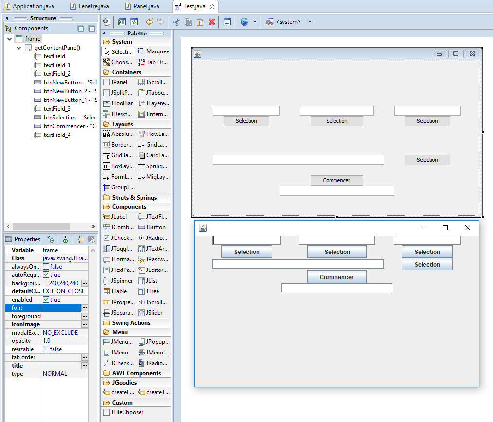 最近,我决定使用WindowBuilder创建一个接口。由于预览功能,我能够看到我的应用程序将是什么样的。但是当我在编写我的程序时,如下所示: