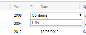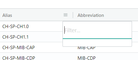 我是刚开始用ag网格工作的。我正在浏览一些文档,并偶然发现了一些我不清楚的地方。在列过滤部分中,我看到了示例,并将一些我认为重复了示例中所做工作的代码放在一起。代码工作,我可以过滤,但我看到的过滤器弹出与我在页面上看到的例子不一样。具体来说,我看到一个过滤器,它有一个文本输入区域,并且,一旦输入了文本,就会看到一个显示和/或按钮(按钮位于文本顶部)的区域和一个第二个文本输入区域。在文档中的示例中,我看到了一个明显的弹出窗口,下拉菜单以"Contains“(并具有其他选项)和下面的文本输入区域开头。我做错了什么?这是预期的行为吗?我的专栏看起来像是: