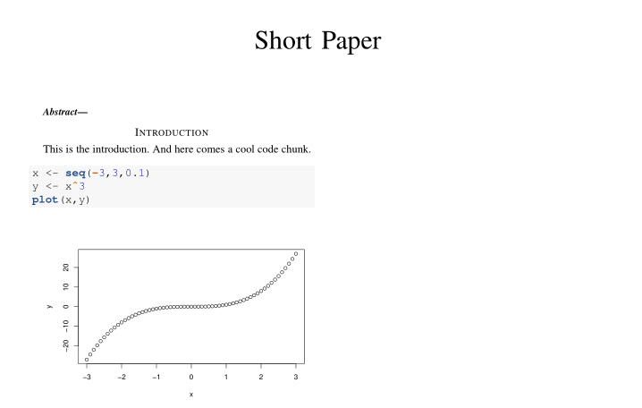 \begin{document}保存更改并返回到R/RStudio和您的IEEE纸张RStudio文件,并按下针织按钮。现在将显示r代码块(如果需要的话)。