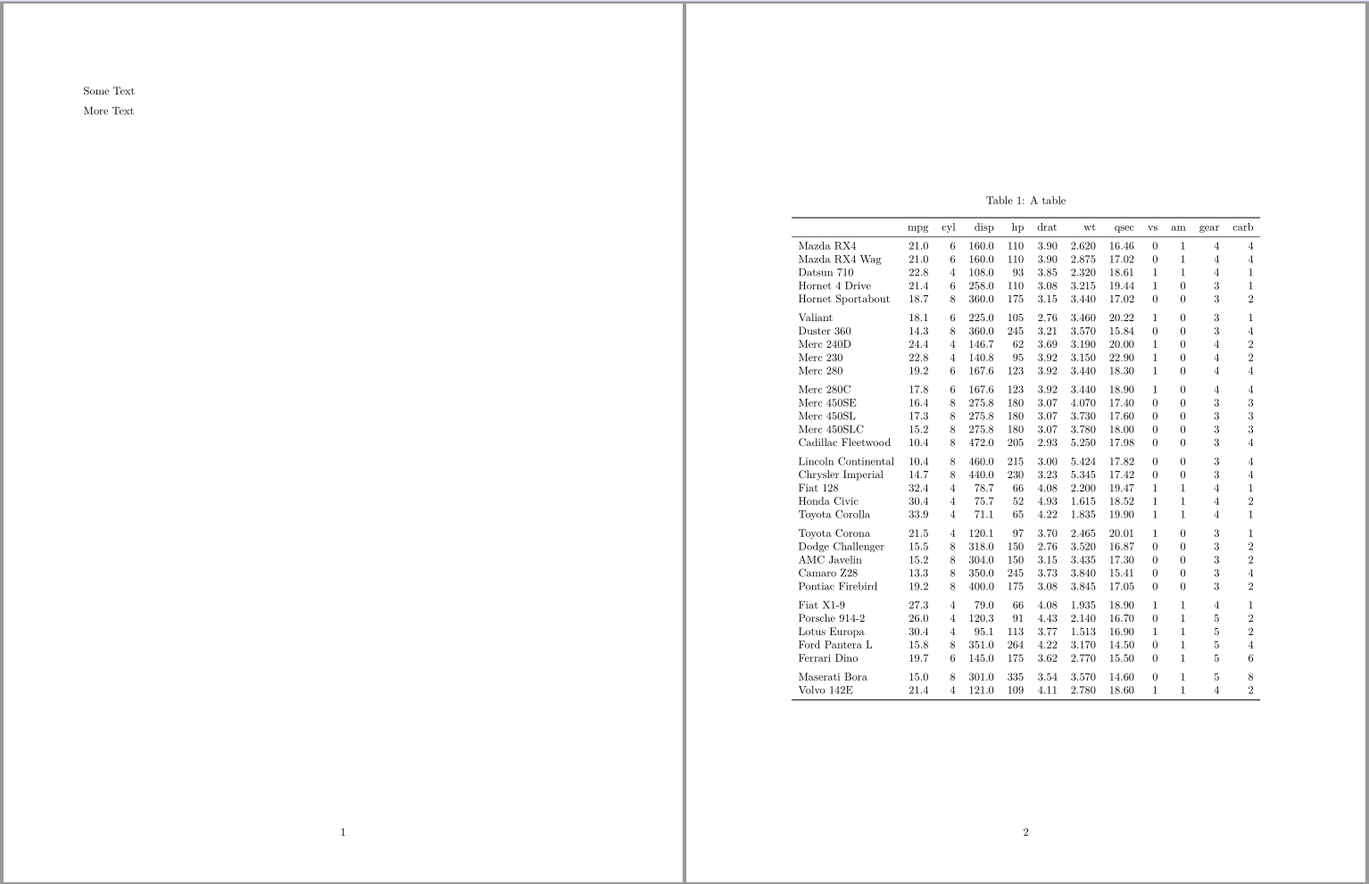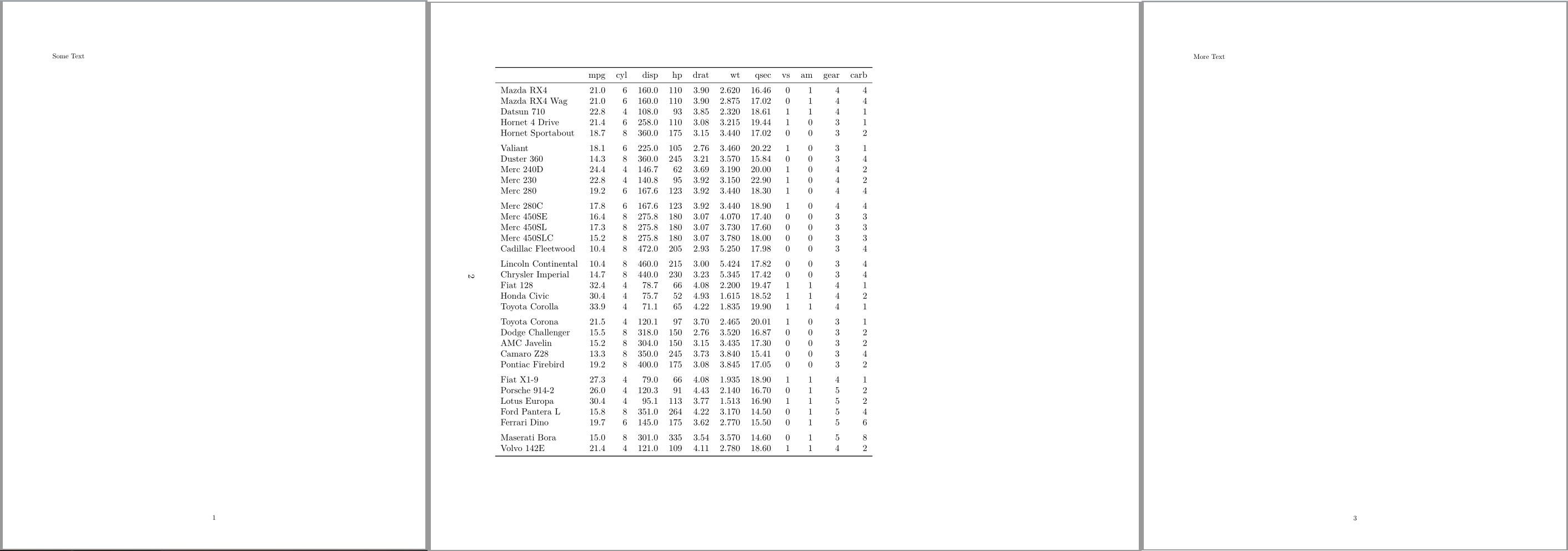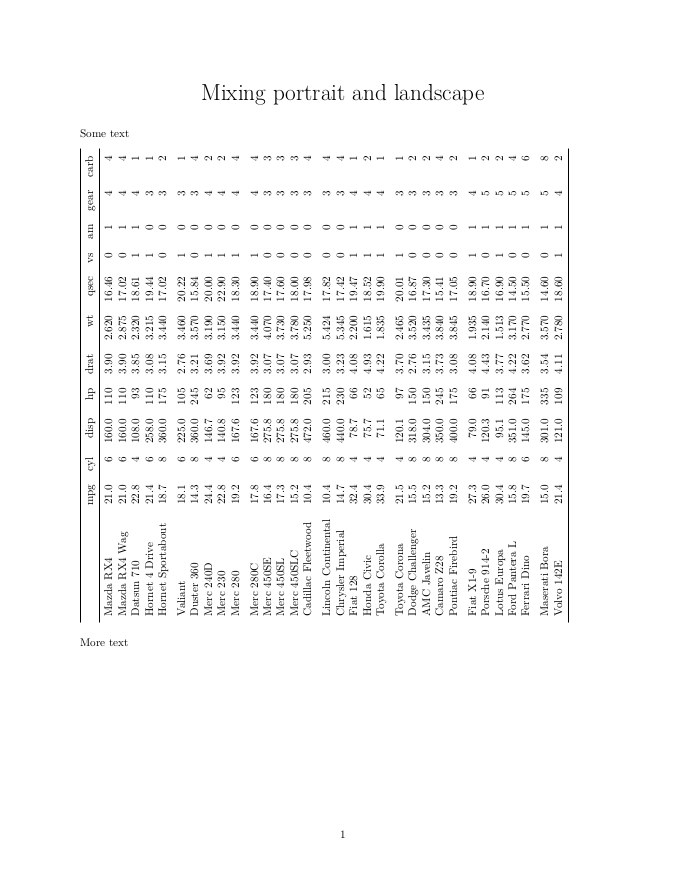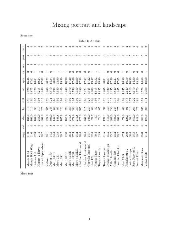 More text这产生了一个单一的页pdf与表格显示在景观。这种方法的问题是,它似乎不适用于标题。