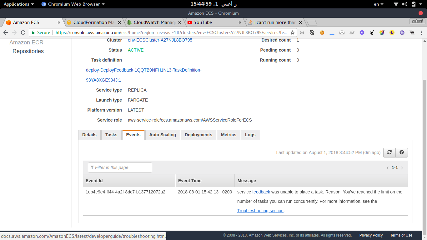 当在一个新的AWS帐户上使用AWS ECS Fargate时,我面临一个问题。当我试图运行5个以上的任务时,会看到一个错误: