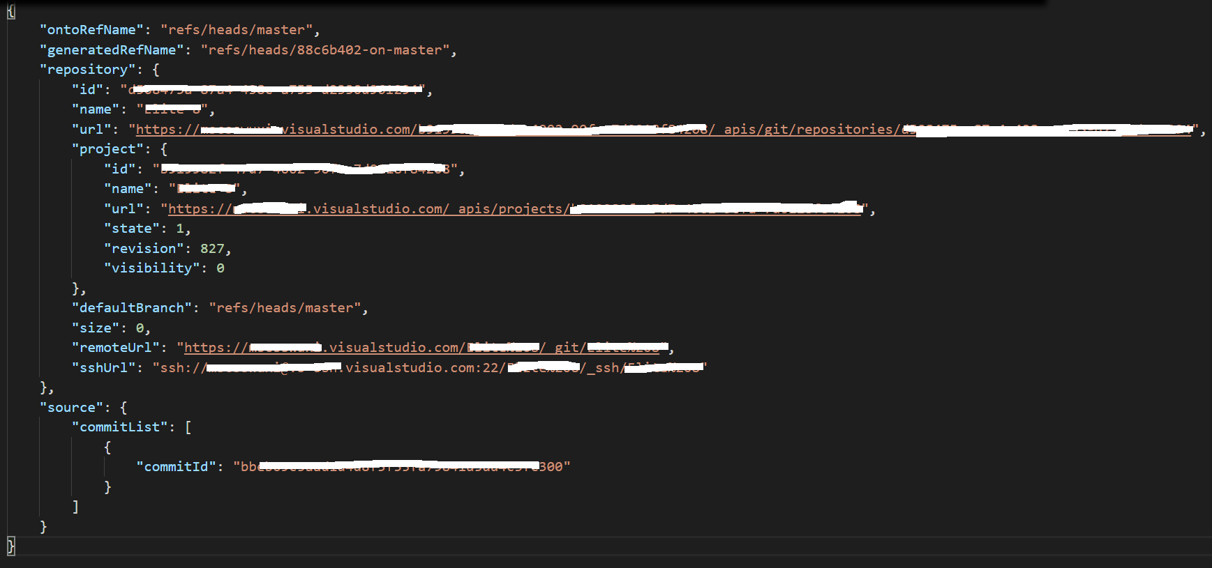 generatedRefName是用于选择提交的新临时分支的名称。在VSTS中,它不直接选择提交到目标分支。它将选择提交到临时分支,然后创建一个拉请求将临时分支合并到目标分支。