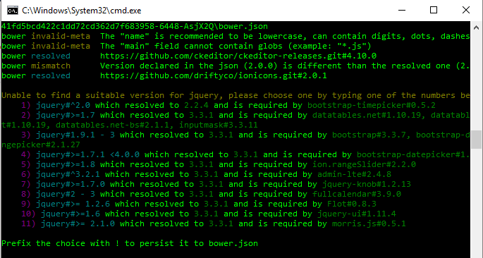 bower install admin-lte它开始下载什么的,但是cmd需要更多的操作。上面写着: