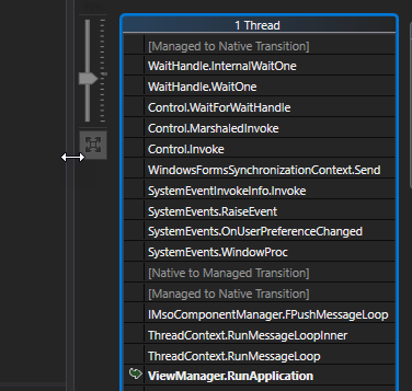 ViewManager.RunApplication是我称之为Application.Run(m_mainFrame.Form);的地方,m_mainForm是我的主要申请表格。