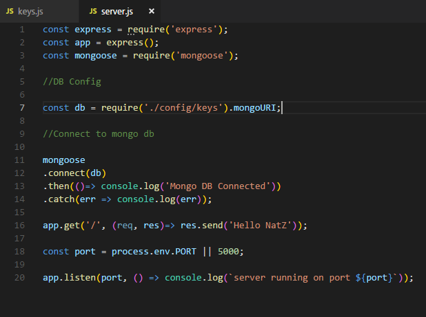 mongoose.connect('mongodb://localhost/projectname') .then(() => console.log('mongo db working')) .catch(err => console.log('ERROR is',err))
