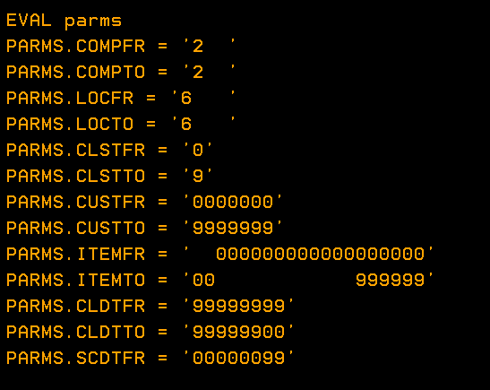 &CUSTFR &CUSTTO &ITEMFR &ITEMTO +