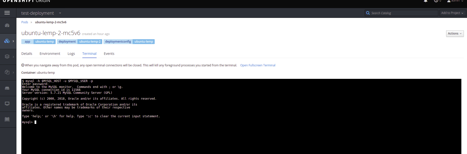 在我的自定义服务器上玩Openshift原产地3.9。到目前为止,这是一次愉快的经历。我一直在为我的LEMP堆栈构建一个基于Ubuntu的自定义s2i图像。
