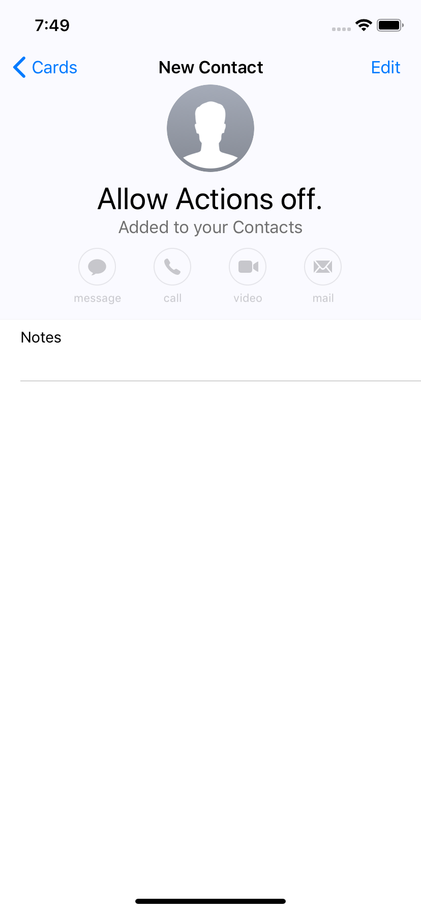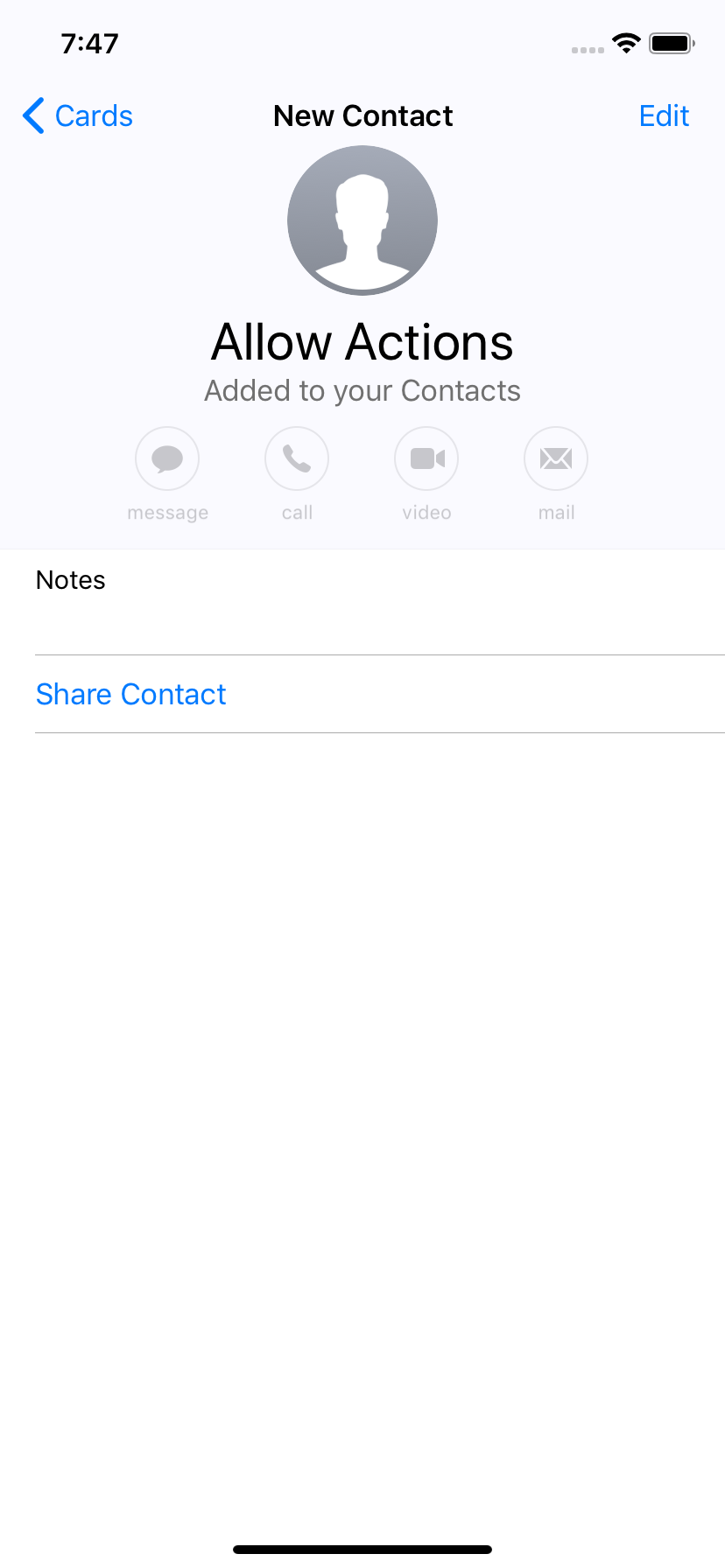 ...为什么CNContactViewController会用contactVC.allowsActions = false显示动作