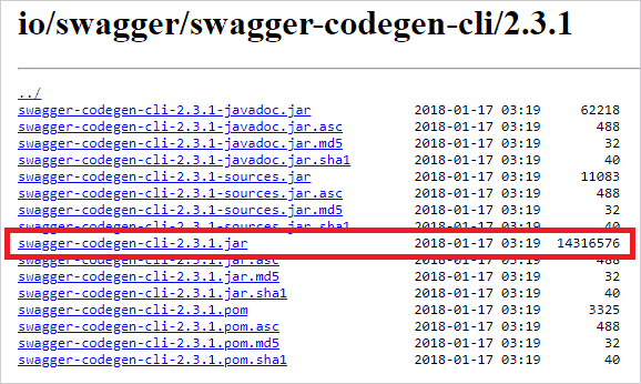 wget http://central.maven.org/maven2/io/swagger/swagger-codegen-cli/2.3.1/swagger-codegen-cli-2.3.1.jar -O swagger-codegen-cli.jar