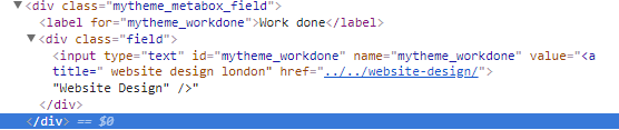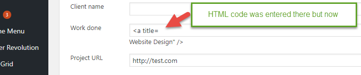 因此,在WordPress管理区域,我输入了一段HTML (将一个可点击的链接作为前端的输出)。