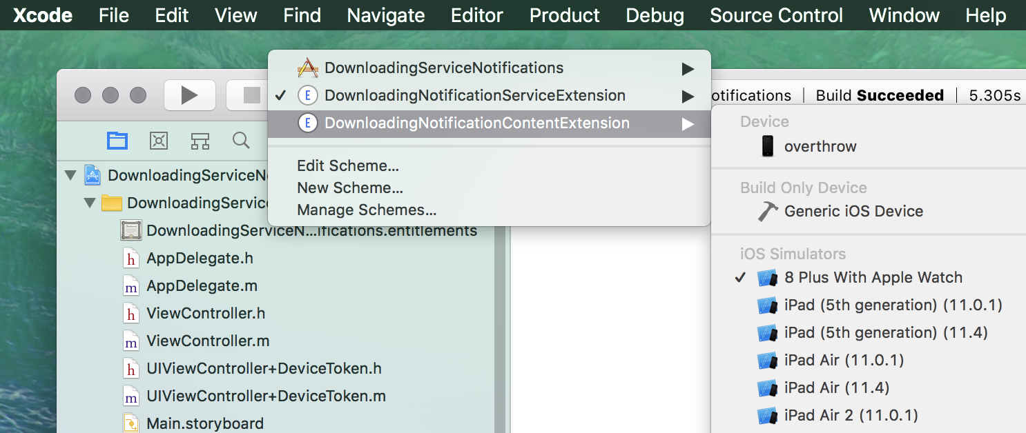 当通知传递时,服务扩展应该启动到调试器。服务扩展只与远程(推送)通知相关,因此您需要一个设备来排除它们。
