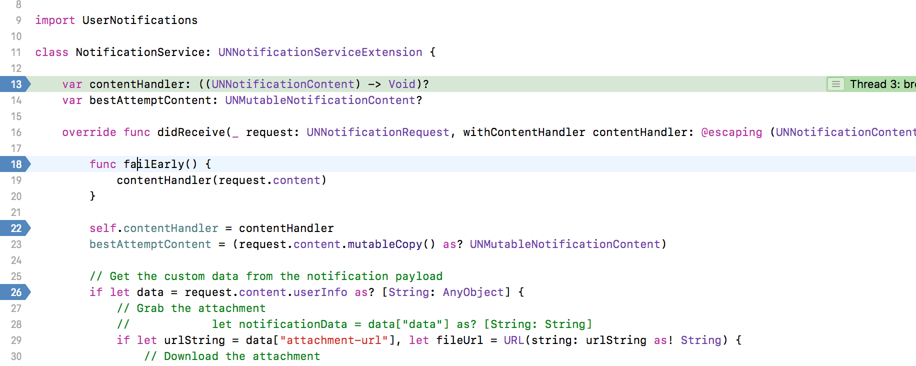 override func didReceive(_ request: UNNotificationRequest, withContentHandler contentHandler: @escaping (UNNotificationContent) -> Void) {