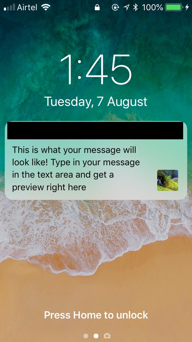alert = "This is what your message will look like! Type in your message in the text area and get a preview right here";