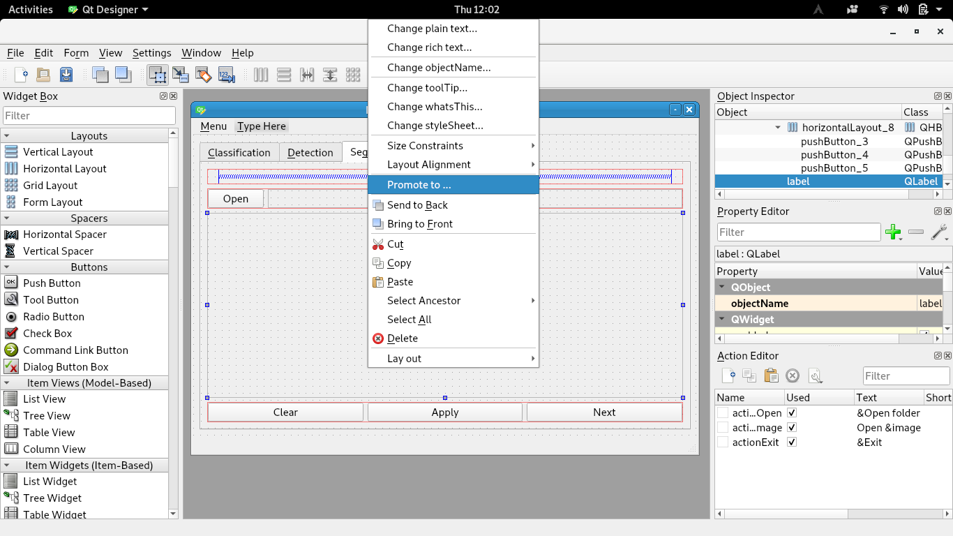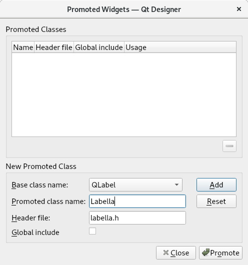 按右键单击QLabel并选择选项: Promote to .