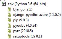 到目前为止,django-pyodbc-azure支持Django 2.1。下面是我的配置。