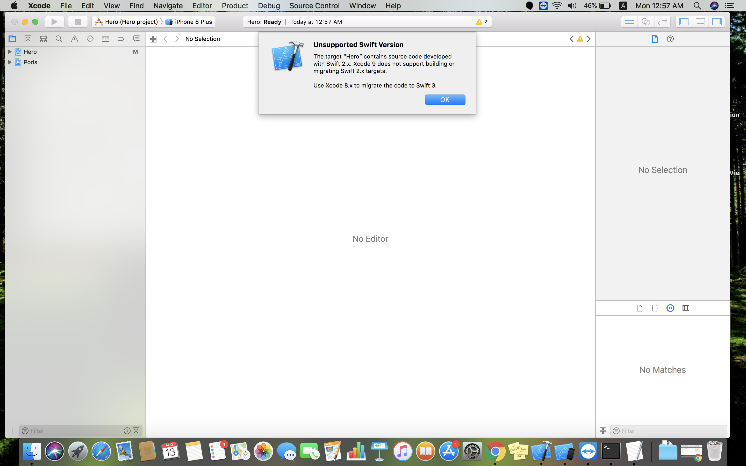 Xcode 9不支持构建或迁移SWIFT2.x目标“