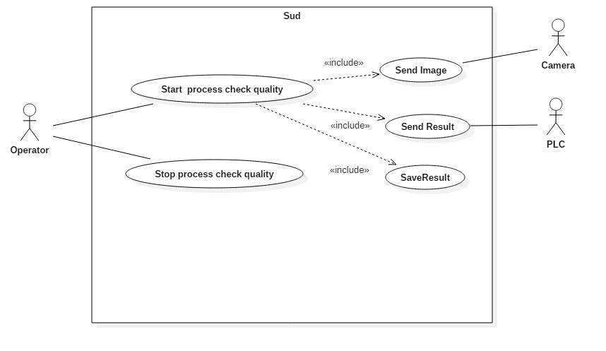 我需要通过图像实现一个自动化的产品质量检验系统的用例图,但是it.When存在很大的问题,这个过程是由操作员启动的,该系统必须从摄像机中获取产品的图像,用一些算法对图像进行分析,将分析结果保存在数据库中,并将结果发送给PLC。我要疯了。我提出的解决办法是数字,但我相信这是不对的。非常感谢你的帮助,也很抱歉我的坏心情。我希望你能说清楚。