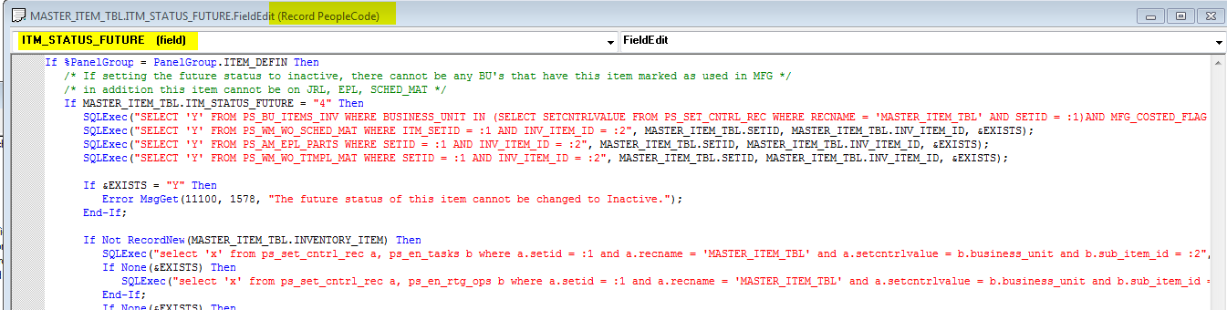 字段的Record PeopleCode ITM_STATUS_FUTURE (有代码):