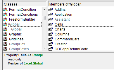 不合格的Cells (或Range、Rows、Columns、Names等)它们不是魔法,它们是针对隐藏的全局范围对象的成员调用(Property Get),该对象聪明地命名为Global。