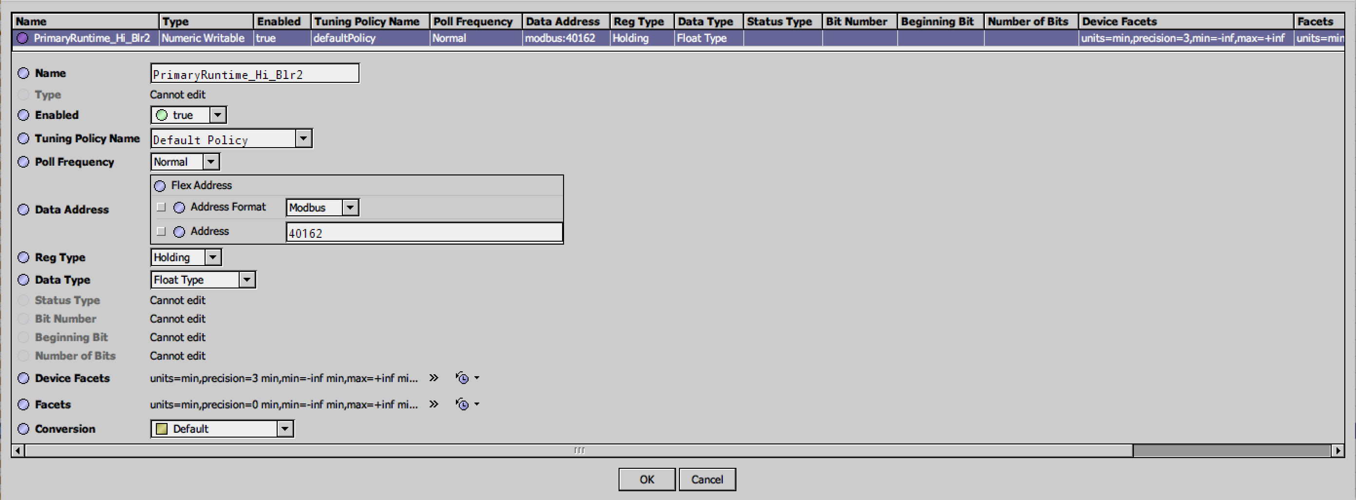 这是从modbus检索数据的简单函数。我们在40160和40162有两个寄存器,第一个是读取366,它是正确的,第二个是读取367 (这是我有问题的一个)。我还在其他寄存器中看到了相同的问题,即使我可以在Jace上看到这个值增加了,读取也不会更新。