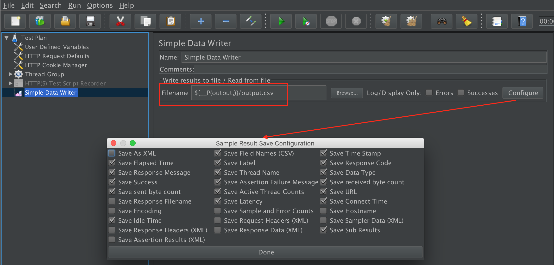 因此,我在测试计划中添加了一个简单数据写入器。