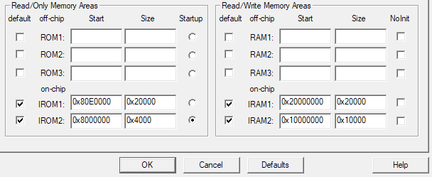 我的问题在于我的Eclipse项目。您可能已经知道,我们使用名为mem.ld的链接器脚本文件配置内存映射。我试着用mem.ld模仿同样的行为,但我想我失败了。每当我闪现Eclipse生成的可执行文件时,我的代码就不会运行。此外,我无法找到在mem.ld文件中指示启动区域的方法。下面是我在mem.ld文件中的内存配置: