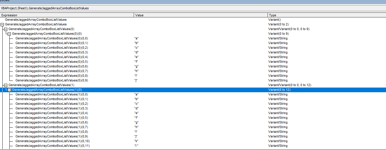 Function GenerateJaggedArrayComboBoxListValues(ByRef ws As Worksheet, ByVal numComboBoxes As Long) As Variant()