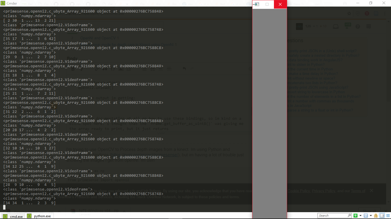 openni2.unload()这是我得到的输出,只是一个没有图像的窗口: