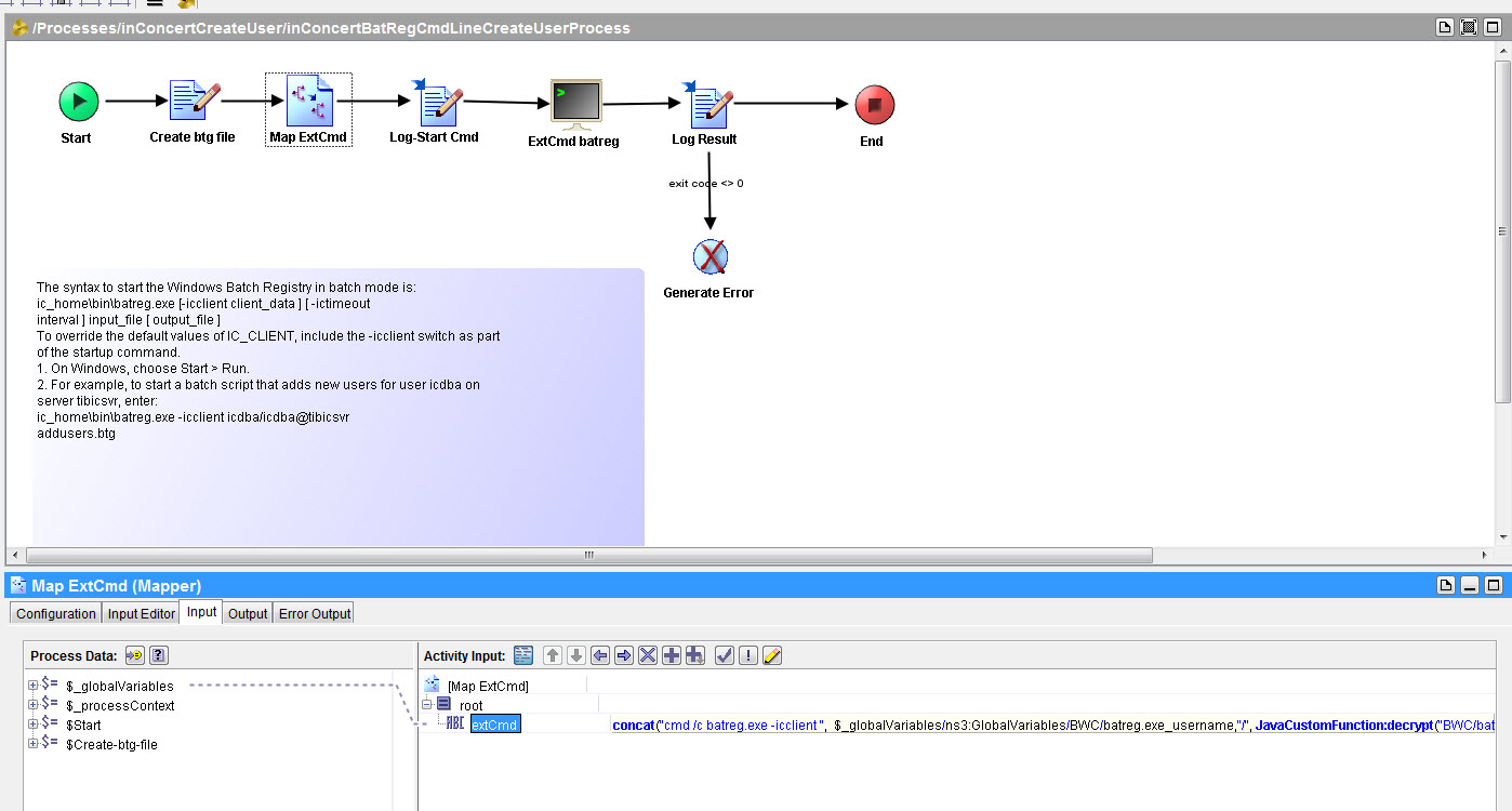 问题是如何从Tibco BW5运行Tibco InConcert批处理注册表脚本?我需要运行的确切脚本: