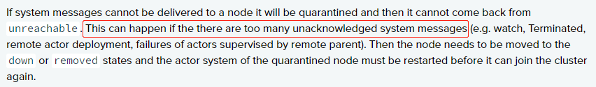 当有太多未确认的系统消息时,节点将被隔离,但在故障检测器触发时不会被隔离。