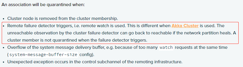 当远程故障检测器在Akka Remote中触发时,节点将被隔离,而在Akka集群中则不会。