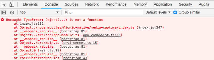 我所要做的就是:在依赖项中,而不是"@ionic-native/media-capture": "^4.12.0"中,我编写了"@ionic-native/media-capture": "^5.0.0-beta.14"。之后,我在CLI中输入了npm update。在我的页面组件中,我使用了import { MediaCapture, MediaFile, CaptureError, CaptureImageOptions } from '@ionic-native/media-capture/ngx';。这里的重要部分是/ngx,如本链接所述。我不得不为AndroidPermissions,诊断,媒体和文件做这个。在这个问题解决之后。希望它能帮助别人。