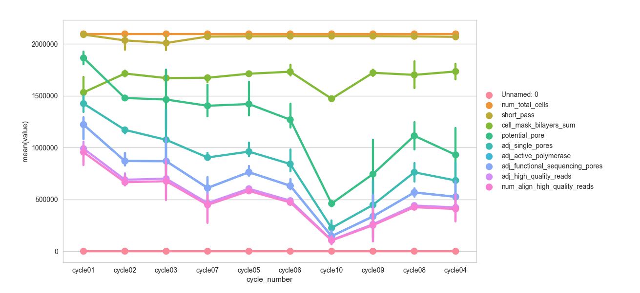 # sns.pointplot('cycle_number', 'value', data=df, hue='variable', err_style="bars", ci=68)