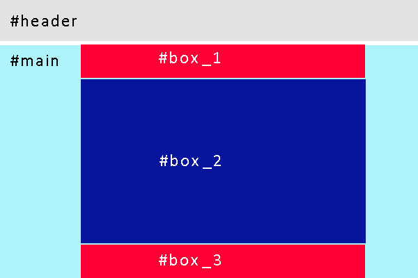 然后,我想在#main div中显示三个框: box_1、box_2和box_3。box_1和box_3具有相同的高度值,box_2扩展自己以获取#main的剩余高度。