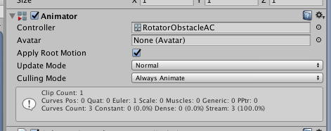 我想在旋转游戏对象上玩移动和旋转动画。对于旋转,我使用了动画师控制器,对于运动,我编写了代码。