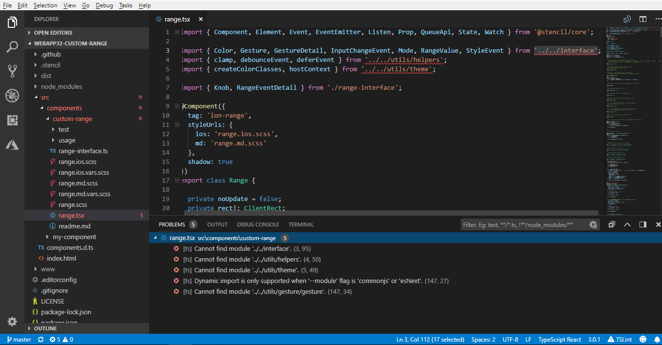 /src/components/custom-range但是,当在VS Code上打开项目时,我会得到以下错误: