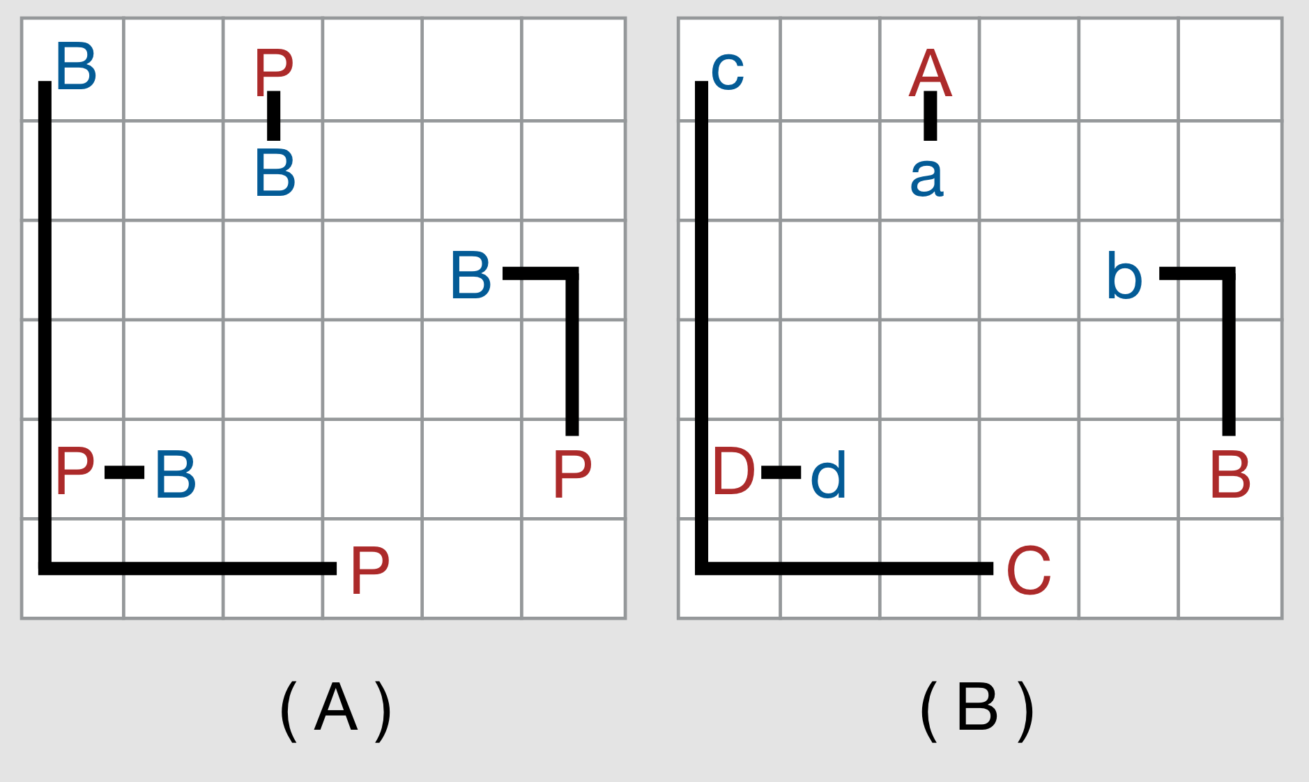 var grid = [['B', '_', 'P', '_', '_', '_'],