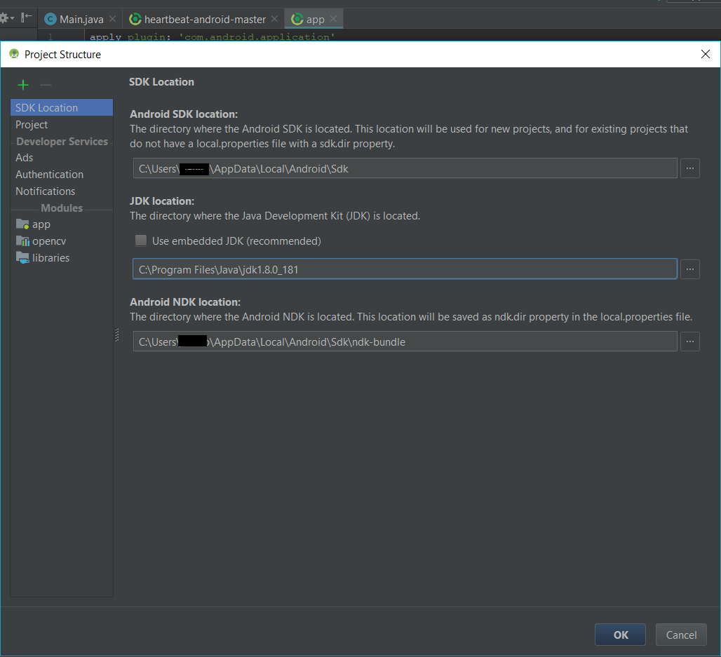 Caused by: java.io.IOException: Cannot run program "C:\Users\danilo\AppData\Local\Android\Sdk\ndk-bundle/ndk-build" (in directory "C:\Users\danilo\Desktop\appandroid\heartbeat-android-master\app"): CreateProcess error=2, Impossibile trovare il file specificato