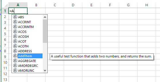 如果要使用IntelliSense作为参数,可以使用Excel库- https://github.com/Excel-DNA/IntelliSense。