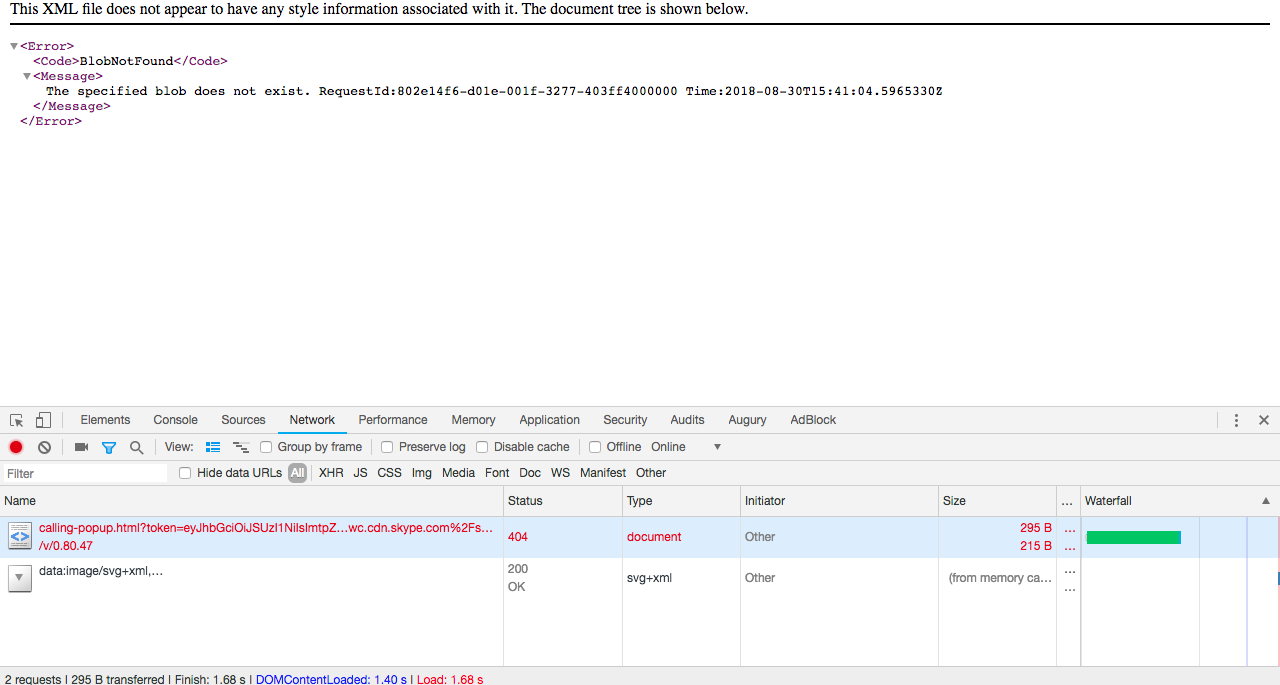 它打开一个新的选项卡,尝试加载url https://swc.cdn.skype.com/v/0.80.47/calling-popup.html。