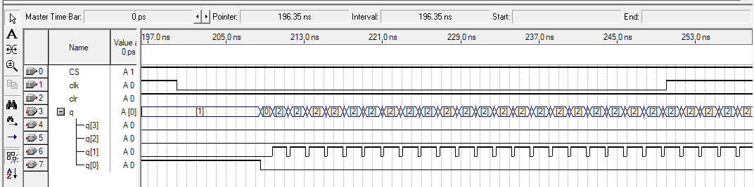 t3 = t2 & q[3];Q[0]是唯一正确的输出,因为所有其他FF的JK输入都收到了错误的值。