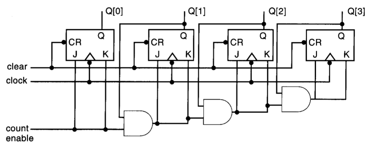 我试图在Sanir的"Verilog“一书中做一个练习:用JK触发器设计一个同步计数器。