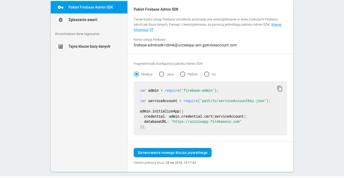 export default admin;serviceAccountKey是我从这里的firebase项目下载的文件(抱歉,它是波兰文)