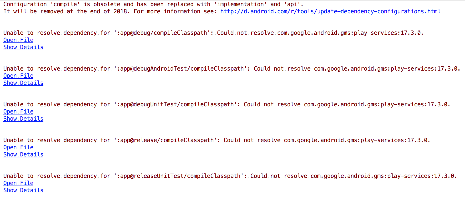 据我所知,为了使用防火墙消息传递,我需要我的google-play-services版本来与我的应用程序的build.gradle中的firebase-messaging版本相匹配。根据Google的Firebase安装指南的说法,我应该使用的火基版本是17.3.0,所以我想我应该使用google-play-services版本17.3.0,但这不起作用,因为Android找不到那个版本: