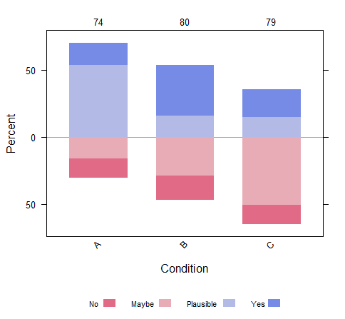 likert(t(test)[,1:4], horizontal = FALSE,as.percent = TRUE,